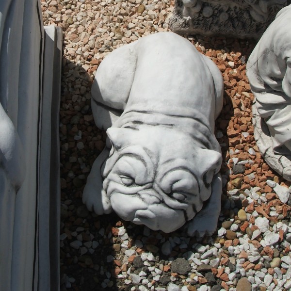 - Fekvő bulldog kutya kerti figura -