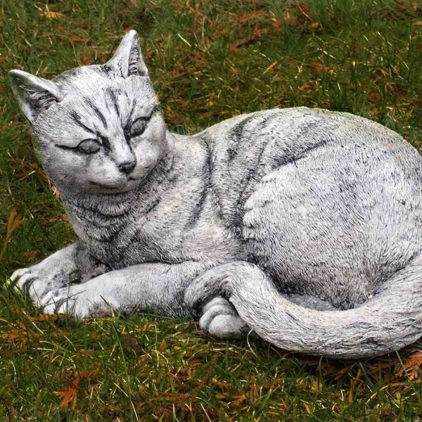- Fekvő macska kerti díszfigura -