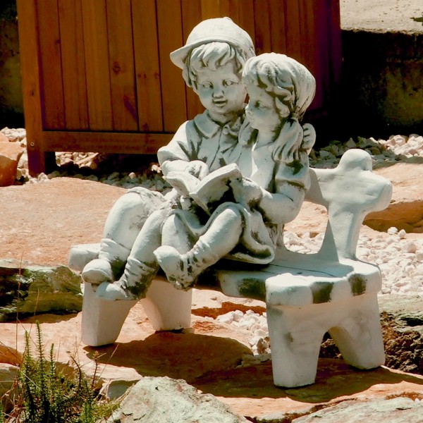 - Kis pados gyerekek kerti szobor -